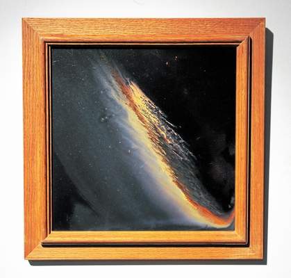 When he retired from teaching in 1996, Sapiro started painting full time “just to fulfill my inner need.” Sapiro found himself painting all day everyday — the lushly and complexly layered oils that take almost a year to finish using an overpainting process — dreamy landscapes and skyscapes with points or sweeps of other-worldly light in them, what Sapiro calls trying to “get atmosphere in the painting.”