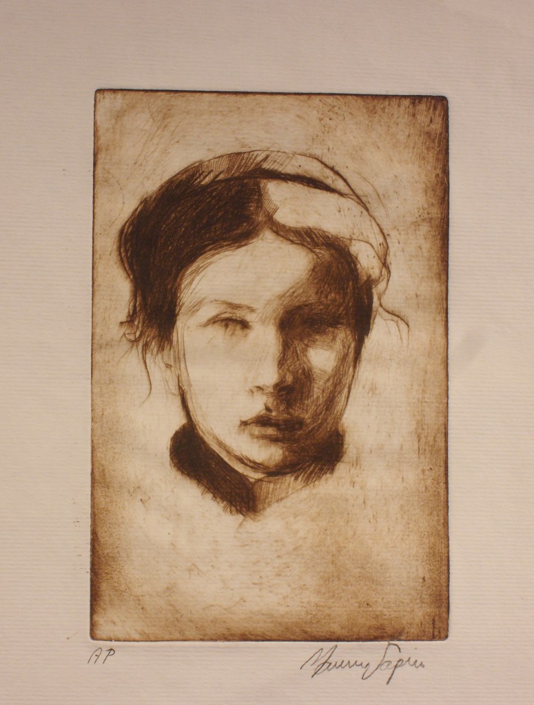 “Lisa” etching, 6″x4″