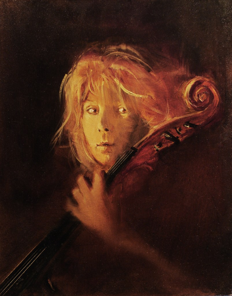One thought on ““Debbie, Posing With My Cello II” 20″x16″”
