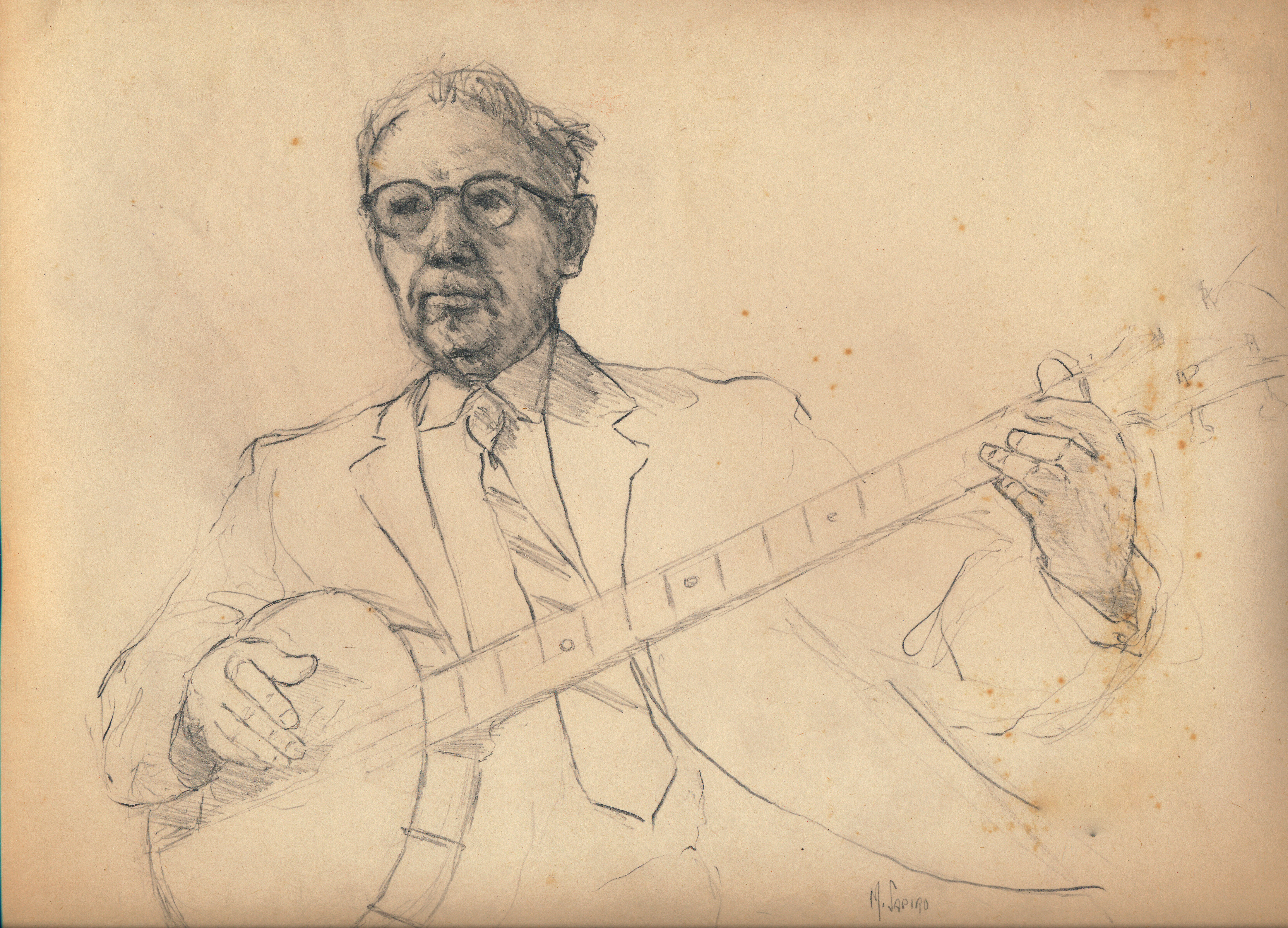 Banjo Player, pencil